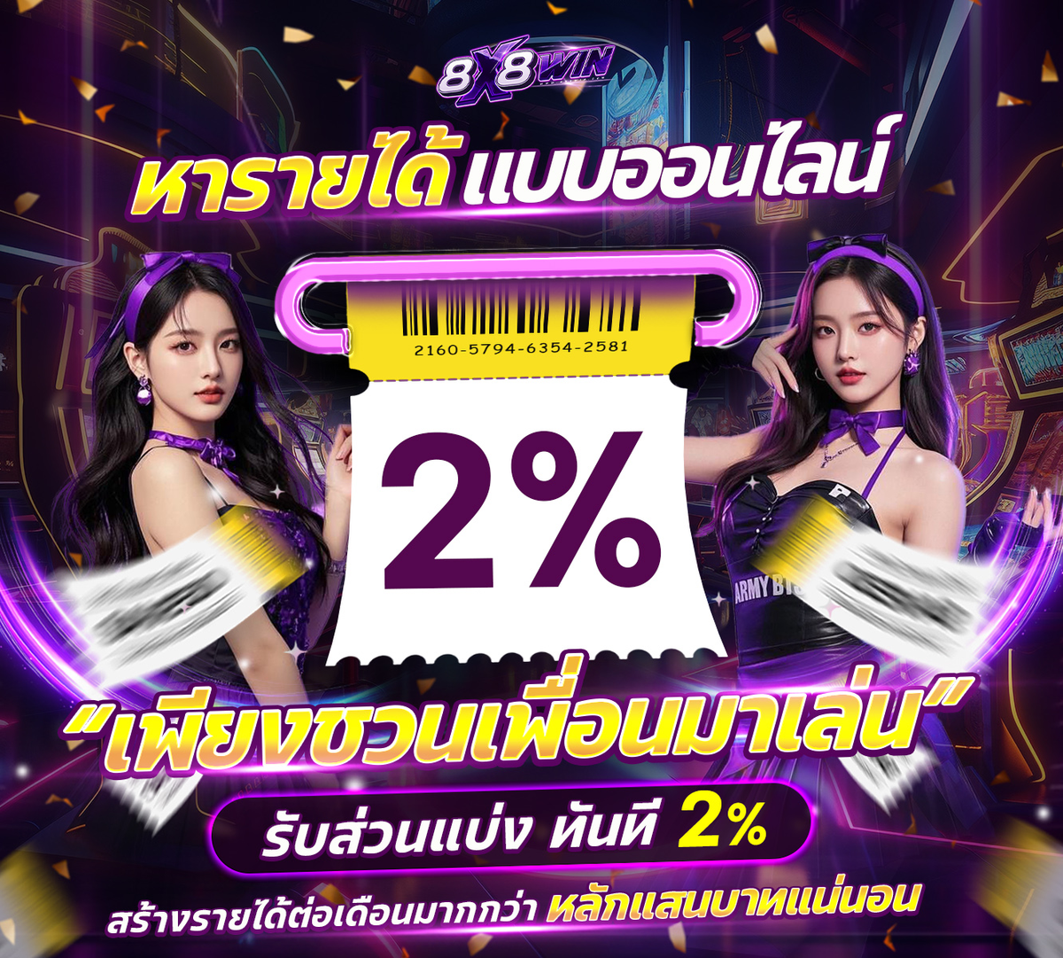 ชวนเพื่อนมาเล่นกับ 8X8WIN รับส่วนแบ่งทันที 2%